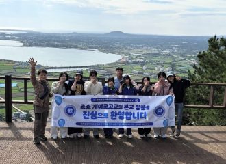 日曜日は、朝から学校に集合して観光バスで移動。校長先生のご案内のもと、持明峰(ジミボン)169m登山にチャレンジしました。古くから村を守る神が宿る山として信仰されてきたそうです。今でも、海女文化や漁村の伝統文化が継承されています。小雨が降っていましたが、頂上に到着するころには晴れあがり、風と波、太陽の光が織りなす素朴で穏やかなチェジュの魅力を感じる絶景が広がっていました。
