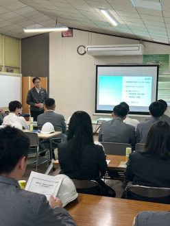 見学ではまず、山陽製紙さんの企業理念や「循環型社会を目指した事業展開」、そして環境に配慮した新規事業についてお話を伺いました。