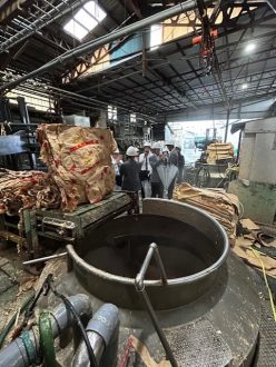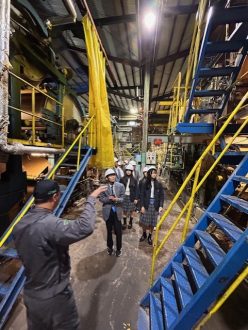 その後、実際の製紙工程を見学。大きな窯に原料を投入し、ドロドロになったパルプが巨大なロールを通して紙へと生まれ変わっていく様子は、まさに圧巻でした。