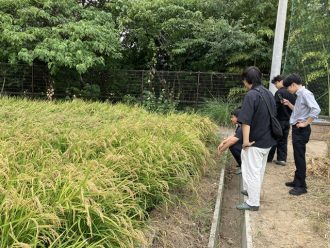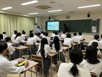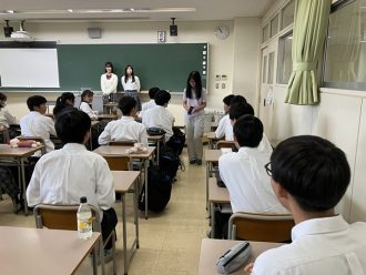 本校では毎年摂南大学の留学生を学校にお招きし、出身国のことを語ってもらっています。1年後に海外への修学旅行を控える高1の生徒たちが、日ごろ当たり前だと思っている文化以外にも多様な文化があることを実感する機会として例年行っています。今年はインドネシア・中国・韓国の留学生が来てくれました。お上手な日本語で自作のスライドで説明してくださる姿に生徒たちも興味津々でした。さらに異文化交流委員の生徒から、日本の文化について英語でスライドを作って説明しました。3000万人を超える方が日本を訪れる今、必要な学びですね。ちなみに、この日はたまたま中学校の農園で稲刈りが行われる日で、留学生のみなさんを農園にご案内すると、農学部の方を中心に大喜びでした。