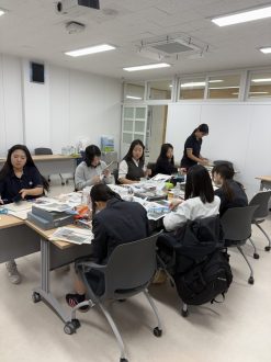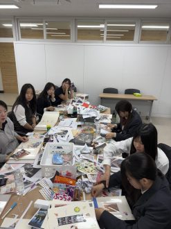 朝から登校して、みんなで記念フォトブックを作成しました。音楽をかけ、コミュニケーションをとりながら、お互いにコメント交換も‥机の上はみるみるうちに大変なことに。半分はチェジュで、残りは1月に日本で完成させます。
