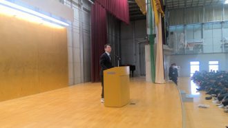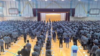 先輩である高2、高3たちも整列しており、新入生を含め、体育館はパンパン状態。緊張の面持ちがまだ抜けない高1学年はきちんと整列し、終始、正しい姿勢で話を聞いておりました。