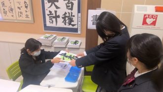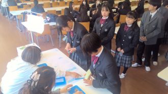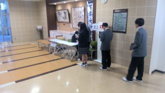 集会の後は各クラスHR。委員・係決めや自己紹介などでクラス活動を行い、その後は個人写真撮影、芸術教科書購買で一日を終えました。