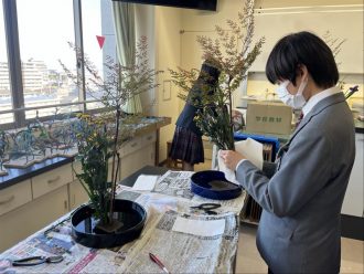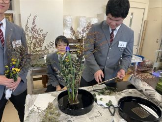12月22日・12月23日の2日間、中学2年生は情操教育として華道を行いました。先生の見本を見て、同じように活けようとしてもなかなか難しく、苦戦しながらも一生懸命に取り組んでいました。将来この経験を思い出し、華道に取り組んでください!!