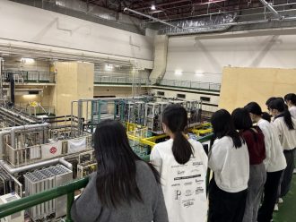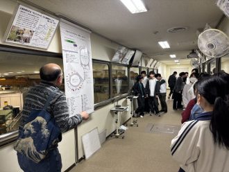 真剣に施設の方の説明を受けていましたが、なかなか難しい内容でした。来年度からの勉強で、見学した施設がどのような研究をし、何に活かされていくのか理解できるようになるとさらに勉強が面白くなってくるのではないでしょうか。