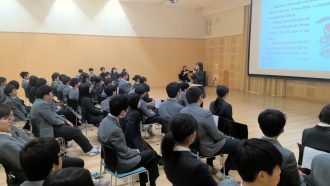 各学年ごとに与えられた英文はそれぞれに「Winter Vacation」(中1)「World Heritage Sites」(中2)「A Mother’s Lullaby」(中3)。