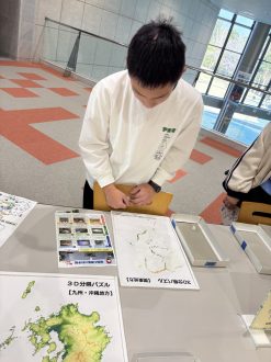 そこから、地図と測量の科学館へ移動し各々で見学しました。日本地図のパズルで競争してみたり、様々なクイズに挑戦している姿もありました。
